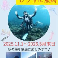 伊豆の海がいちばん青く澄む季節、冬のダイビングをもっと気軽に楽しんでいただけるように、ダイブショップソルでは 11/1~5月末までレンタル器材無料キャンペーン を開催します! キャンペーン期間中は、フルレンタル一式(スー …